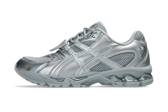 The ASICS × KIMHĒKIM GEL-NIMBUS™ 10.1 shoe reimagines GEL-NIMBUS™ 10.1 sneaker silhouette through KIMHĒKIM’s design language. The shoe features subtle heart details and sleek tonal layering, presenting a contemporary take on ASICS’ heritage.